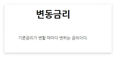 오늘 알아볼 용어는 '변동금리'이다. 변동금리는 고정금리 정리할 때도 조금 알아봤던 거라 오늘은 간단하게 다양한 금리에 대해 복습하는 시간을 가져보려 한다.