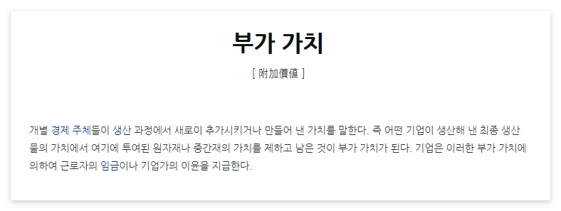 오늘 알아볼 용어는 '부가가치'이다.
