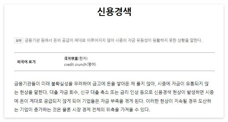 오늘 알아볼 용어는 '신용경색'이다.